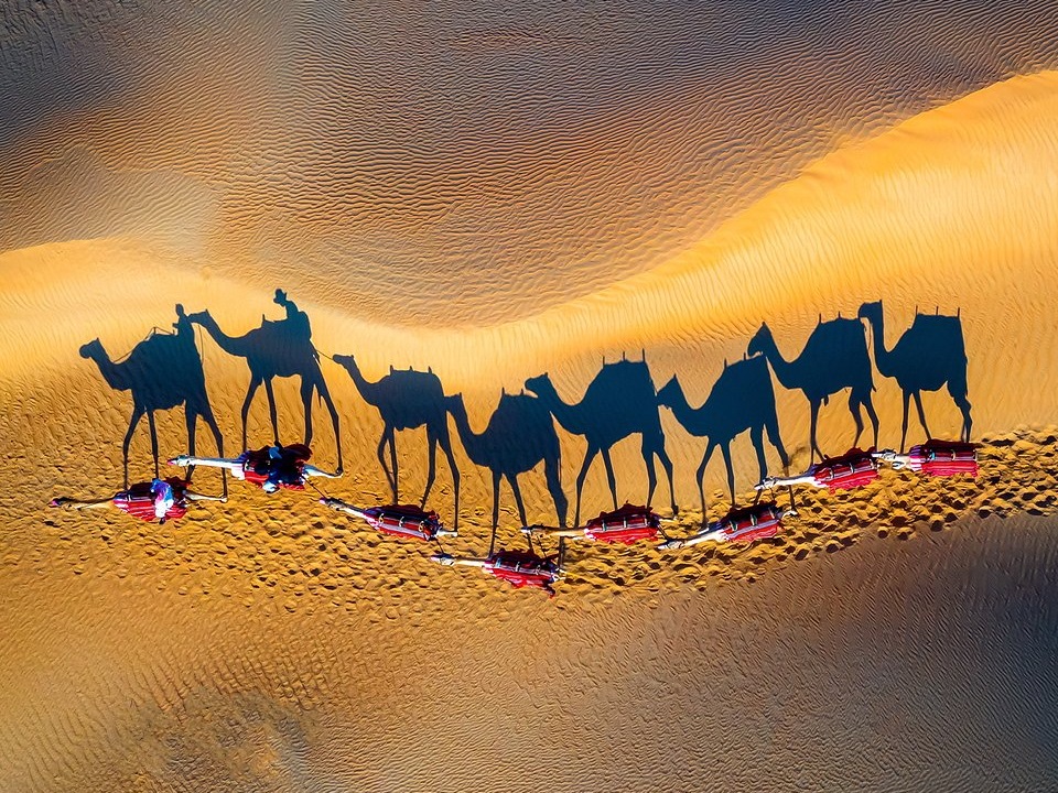 I osjećaj za teške okolnosti pod kojima je uspio napraviti ovu sliku: „Pokušaj, napraviti fotografiju dronom i istovremeno osigurati da ne padneš sa kamile, bilo je pravo iskustvo."